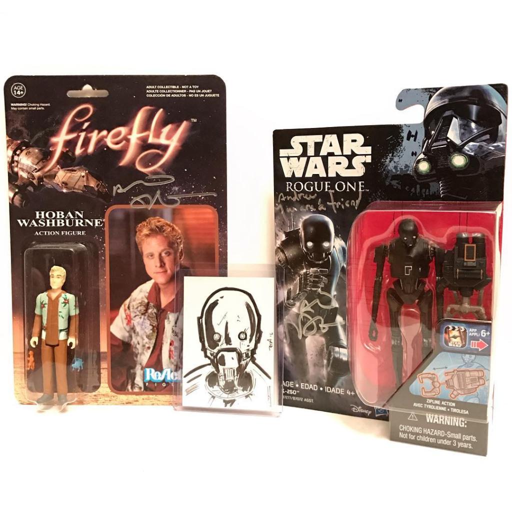 Alan Tudyk – What a genuinely nice guy. I immediately greeted him with, “The con man himself, hello!” He let out a laugh and we hit it off. He stopped what he was doing to listen to how I recently got into Firefly. I explained that my first exposure to his work was Steve The Pirate and Sonny. He was very sincere in asking me what I thought about Firefly, as if it were on its first season (…get it?) and then he signed my K-2SO figure with a personalized quote from Rogue One, saying he didn’t really get a lot of K-2SO figures at NYCC. Thanks, Force Friday!