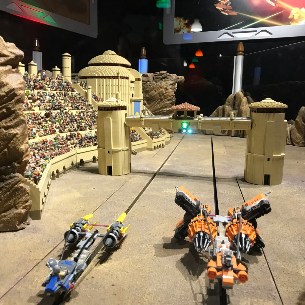 The Lego Star Wars Episode I: The Phantom Menace Miniland! This was an amazing display of mini Tatooine & mini Naboo… Anakin’s podrace and the Gungan battle against the Trade Federation. There’s a lifesize Lego R2-D2, Lego Star Wars videos playing on a screen, and some cool art on the wall.