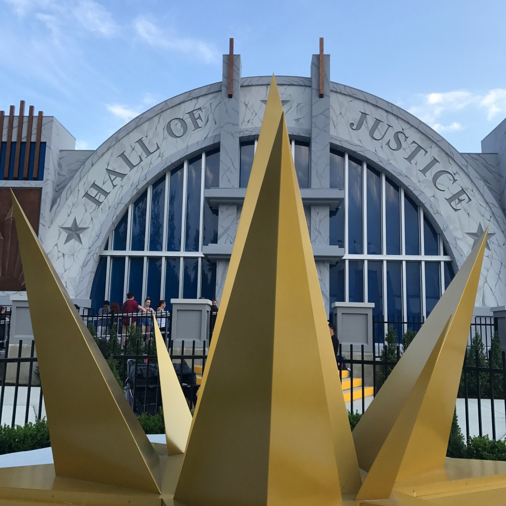 These are all great photo opportunities for DC fans, especially if you score a deal on Six Flags’ capes in the shop. There’s often a BOGO deal on capes, or specials offered with your Season Pass. But nothing will be a better photo opp than the actual Hall Of Justice itself. From the weathering of the building to the “fountain” sculpture in the front, all the details were in place for a fantastic Justice League experience.