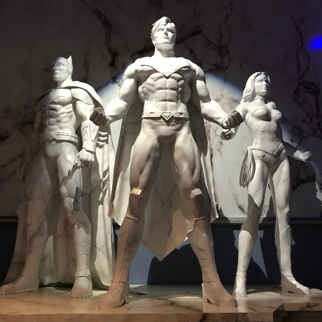I thought the marble was well done and they even topped it off with marble-esque statues of our favorite JLA members: Superman, Batman, and Wonder Woman: