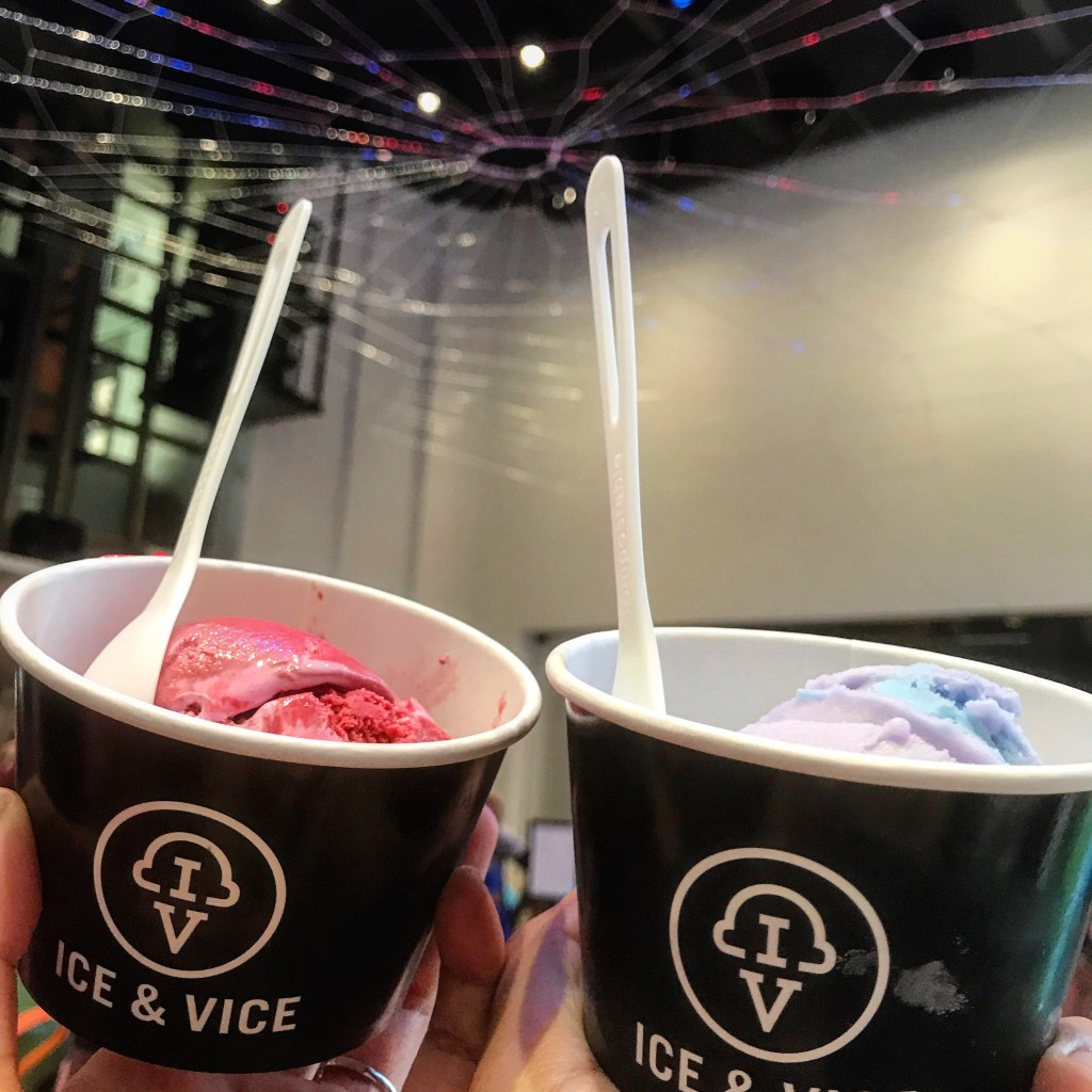 The center was still open to the public but on top of the original exhibit, Sony Square had also invited lower east side’s Ice & Vice to provide complimentary ice cream. Choose from one of two seasonal flavors: Blue/Purple (butterfly pea flower, yuzu, coconut) or Red (hibiscus rose, Swedish fish fluff), and an assortment of sprinkles. We got each flavor and paid tribute to our favorite web-slinger underneath the epic cobweb up above.
