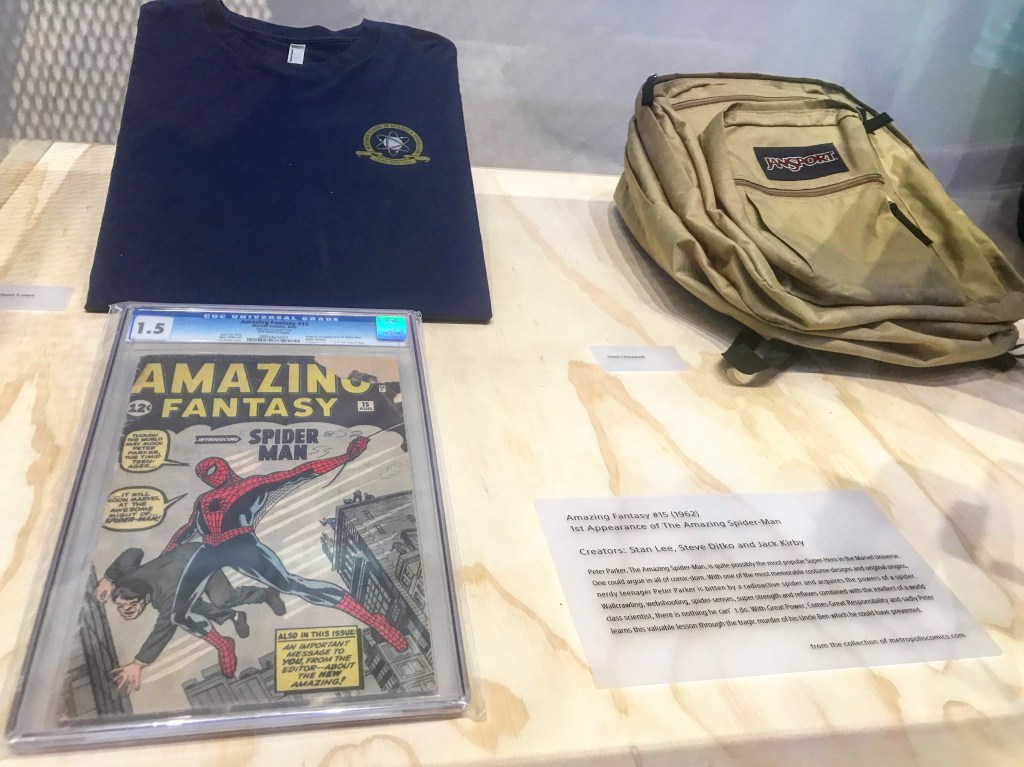 The final elements of our visit were more comic related like an original 1962 Amazing Fantasy #15, the first appearance of Spider-Man! It was graded & slabbed by CGC (1.5). It’s totally beat up but even at a 1.5 (out of 10), it’s still worth almost $10k today! Here it is alongside Peter’s MSST shirt & backpack: