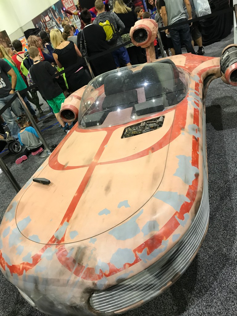 There were also plenty of props and costumes on display, including a semi-lifesize Tatooine Landspeeder (signed by many of the Original Trilogy cast) and Rey’s Jakku Speeder (accompanied by electronic BB-8):