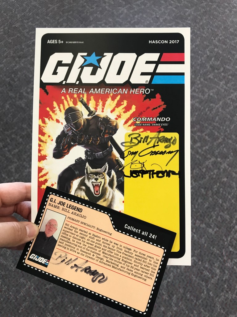 Along with vintage figures and props/costumes from the films like Storm Shadow & Snake Eyes, there were chances to meet G.I. Joe legends (24 of them!) to sign an exclusive Snake Eyes cardback.