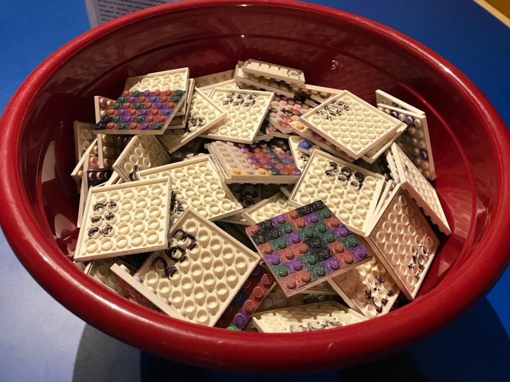 In the Master Builder Workshop, you can build mosaics of Ninjago characters! Simply use the examples on the screen provided by the instructor. There are buckets of colors on the tables for you to build on a 16×16 plate.