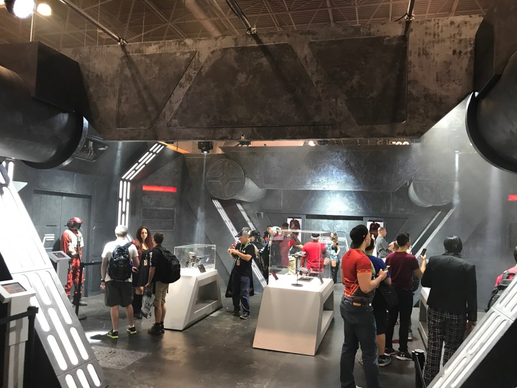 The interior was just like a First Order base with the wall designs and even doors resembling the on set look, while beams of light hit the floor with mild smoke effects.