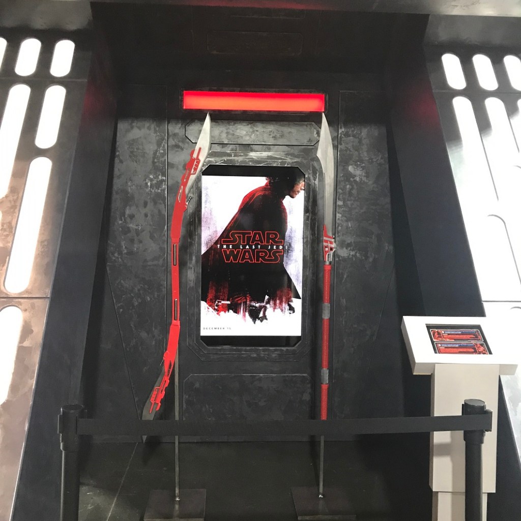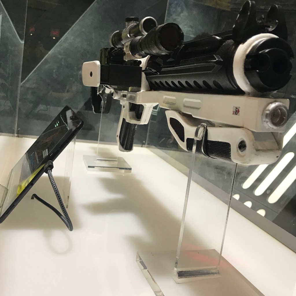Each exhibit is accompanied by a screen, like you would see in the Star Wars universe, except these screens will explain each piece. Here’s an example of what was said about a couple of these weapons: