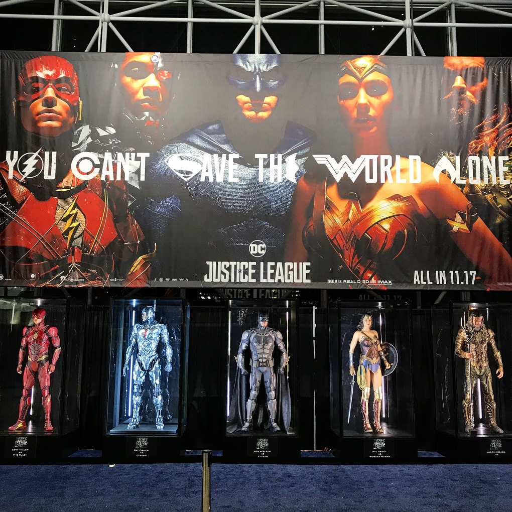 Despite the space restrictions this year due to the $1.5 billion Javits Center expansion, I think ReedPOP did a good job managing their 12th NYCC. And as always, they had a great display for DC Comics in the South Concourse. A giant Justice League banner & costumes were out, DC television show clips were playing, and some cool freebies were given out.