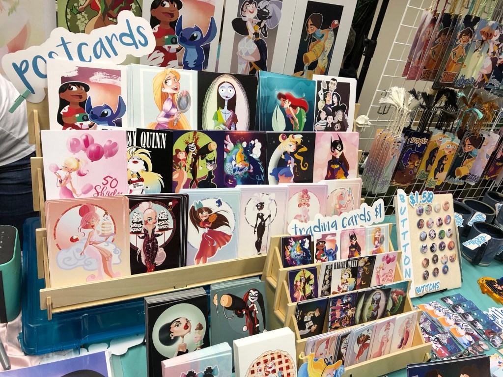 It was also common to find artists who had art all ready for purchase – prints, cards, stickers, buttons…