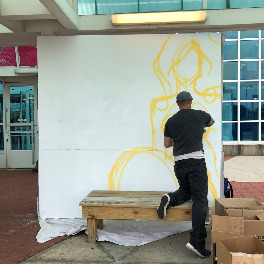 As the day went on, there were great options for food. You could either dine at the museum’s built-in food court, “The Red Planet Cafe”, or try some of the food trucks that CradleCon was hosting outside! That’s where I noticed artist JP Draft live spray-painting Wonder Woman, Supergirl, and Batgirl: