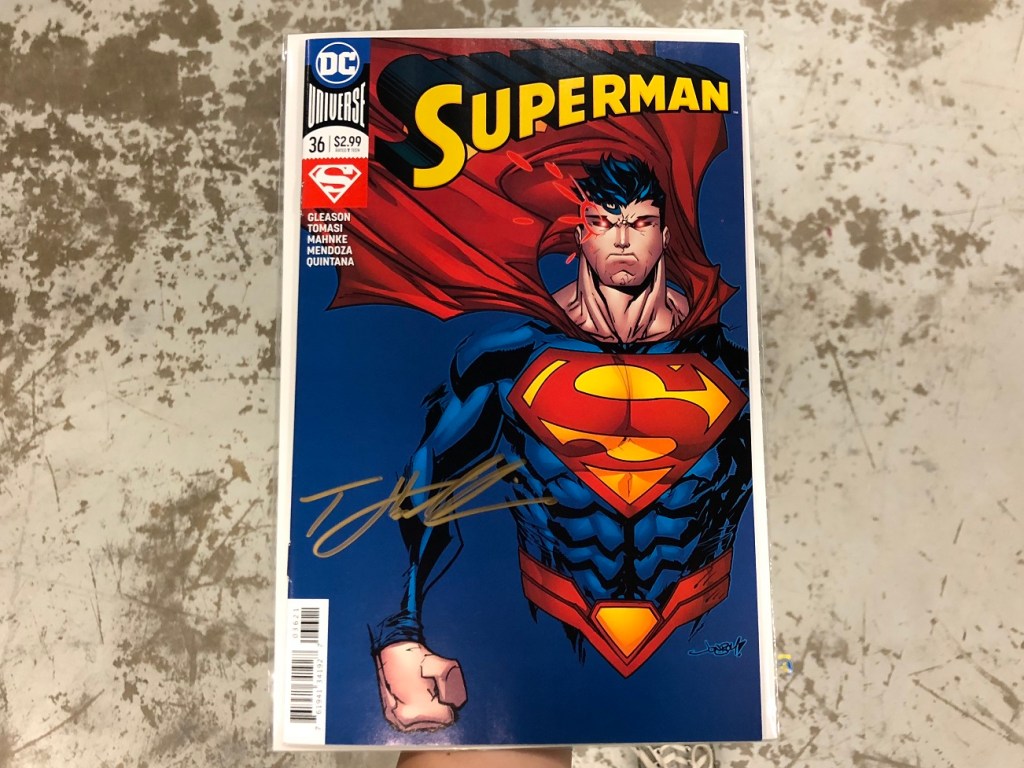 I did get to meet one guest, Tyler Hoechlin, who as I mentioned plays Superman in the CW series Supergirl. He also gained much popularity as Derek in Teen Wolf, and I noticed that many fans were there for his role in that as well! But I’m glad to get this issue of Superman signed by him. It’s still technically the 80th year of Superman, so it’s great to have another Man of Steel autograph in my collection: