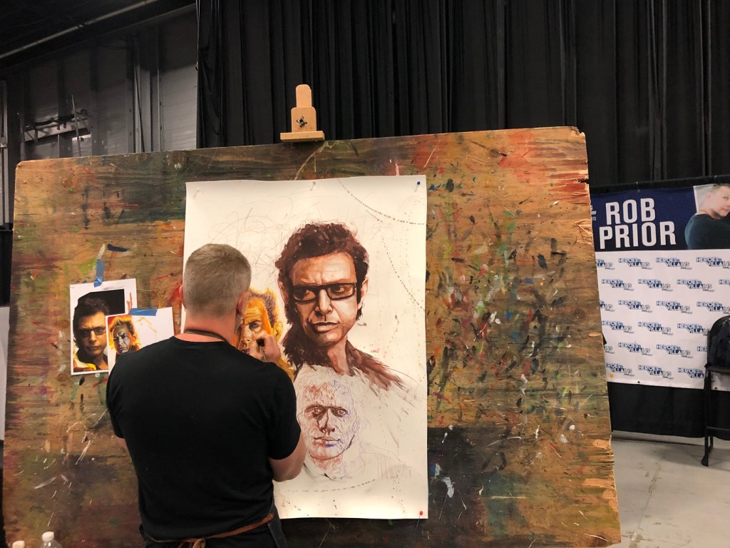 Fantastic programming was constantly available, from panels (Gotham, above) to meet & greets, and even live painting by featured artist Rob Prior, who is at every HVFF show. Here he is, putting together a massive Jeff Goldblum project: