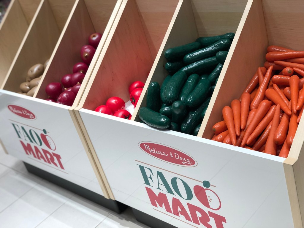 The first floor is where you’ll find Magic Kits (including the occasional magic demonstration), stuffed animals & dolls, racer customization, Sharper Image electronics, and even a Melissa & Doug grocery store (with even a checkout line) where kids can make-believe supermarket right there in the store!