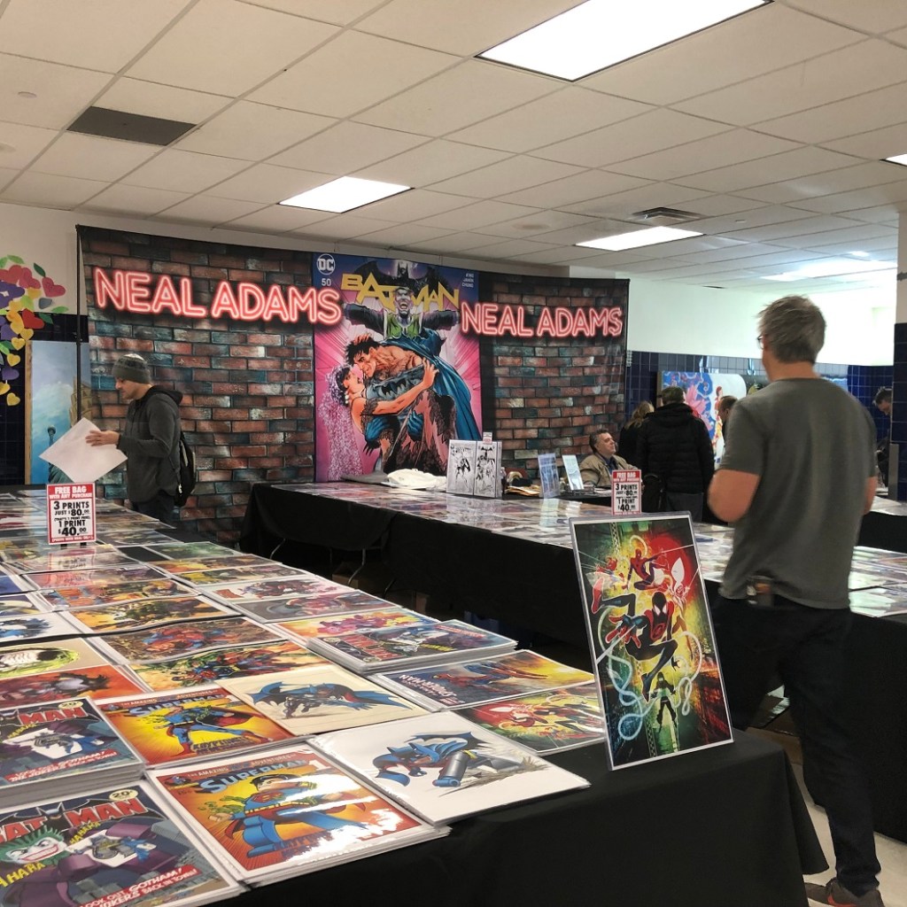 Neal, per usual, had his iconic comic con booth set up in the school cafeteria featuring countless prints, variant cover comic books, sketch covers, and even original artwork! He even had his special variant covers for the upcoming Detective Comics #1000 up for pre-order…