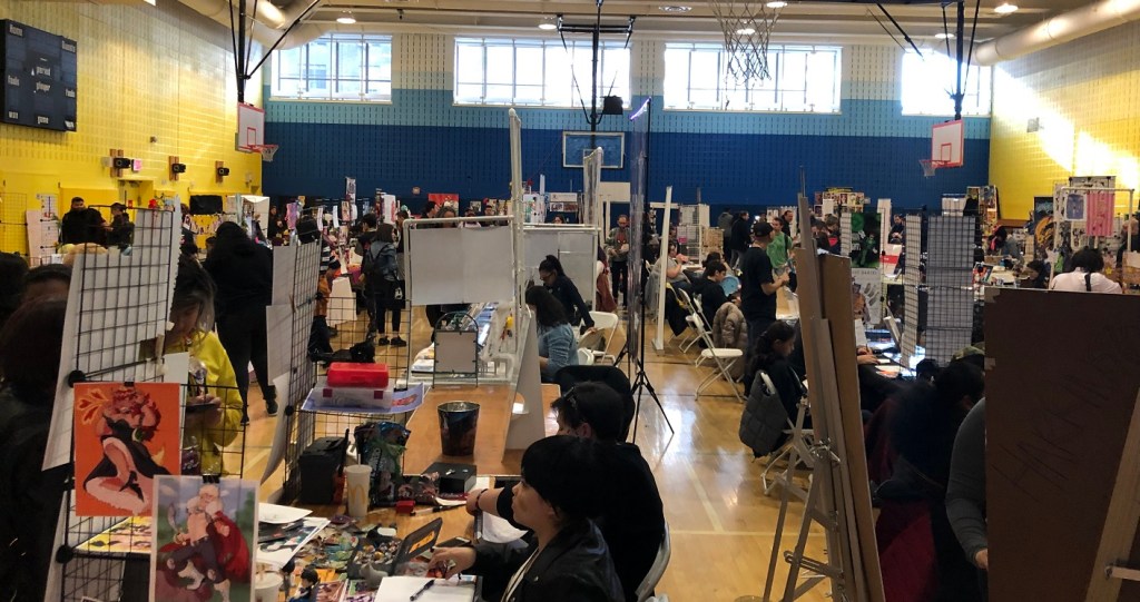 We’re talking about multiple aisles of art across the school’s gym and cafeteria. So on top of attending the panels, it took me some time to thoroughly go through the show floor: