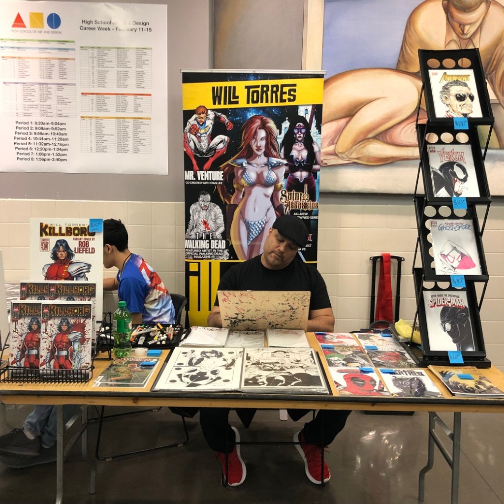 So yes, there really was art everywhere you look! In fact, in the school lobby, artist Will Torres was even set up with his self-published books and sketch covers: