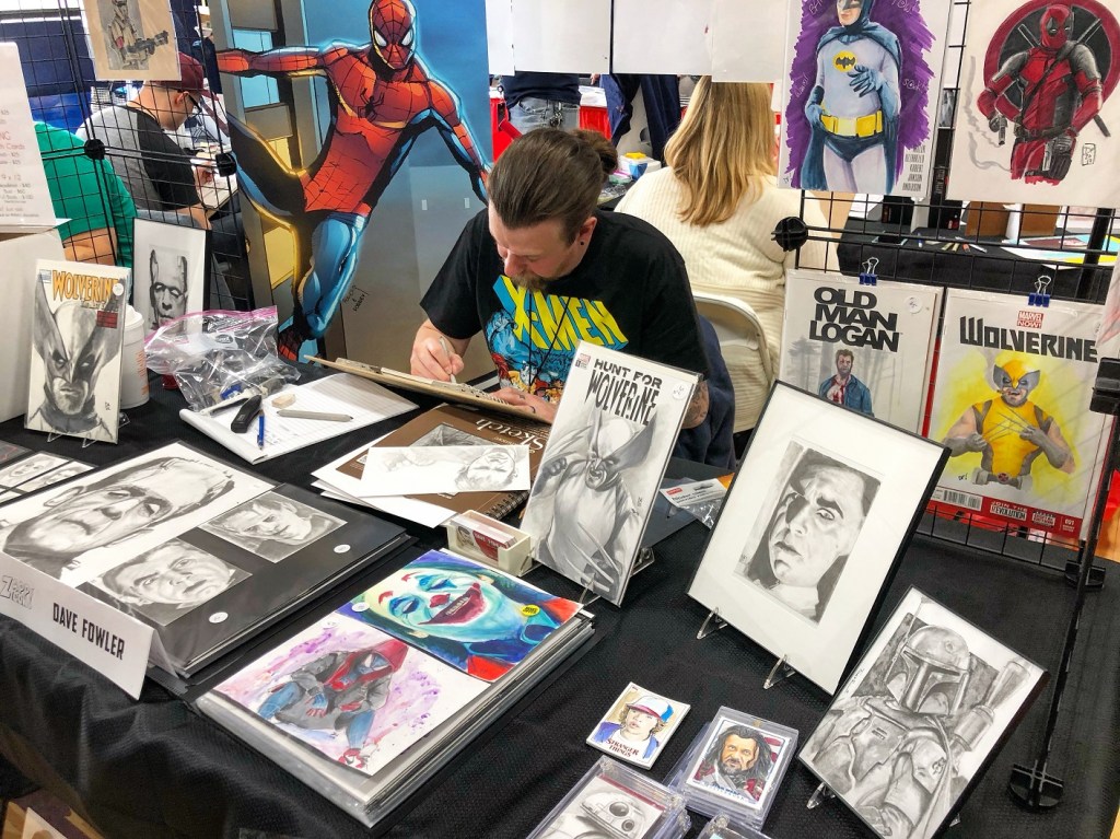 Most had spots open for commissions, where they could complete a brand new art piece for you at the show, whether it’s a comic book sketch cover, a trading card, or maybe even a canvas painting! Here’s Christian Masot’s Pennywise (IT) painting done live at the show: