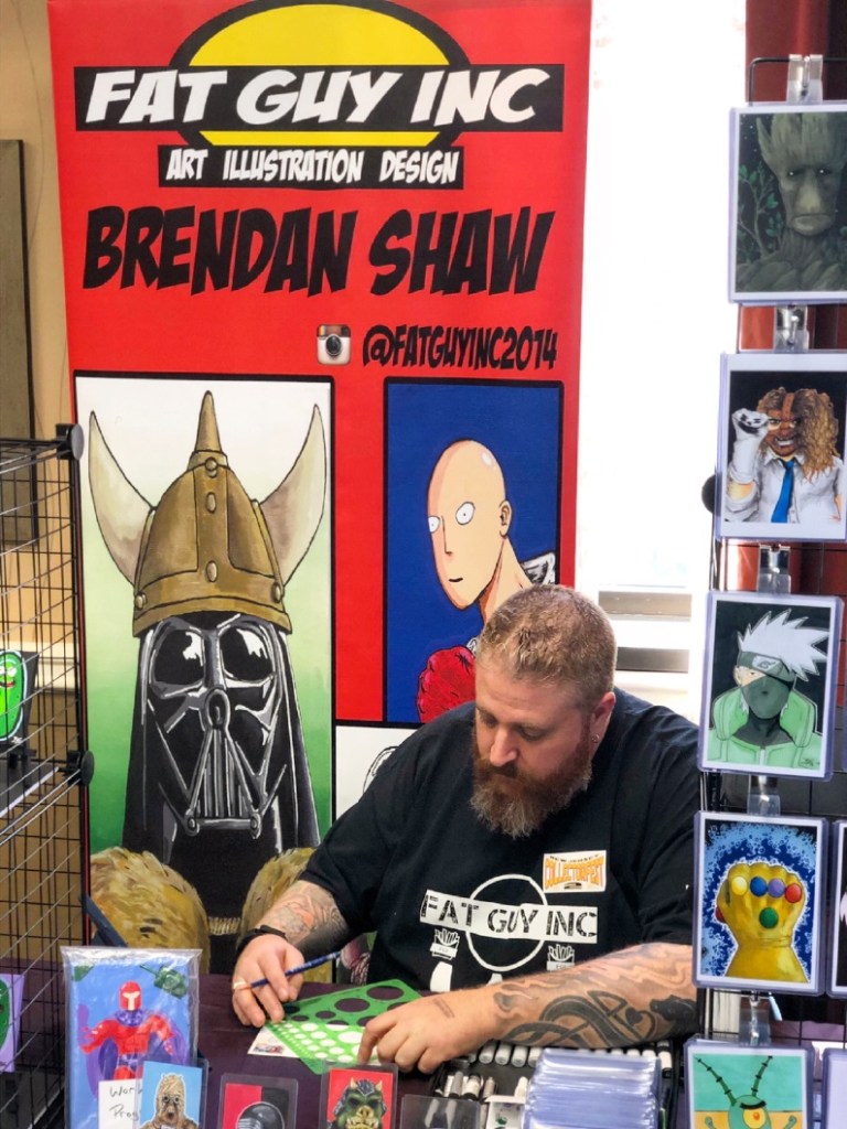 And Fat Guy Inc.’s Brendan Shaw was working on a special mini-canvas painting of X-Men’s Magneto for the show. Brendan is a Topps trading card artist and well-versed in all things pop culture, which shows in his diverse selection of art!