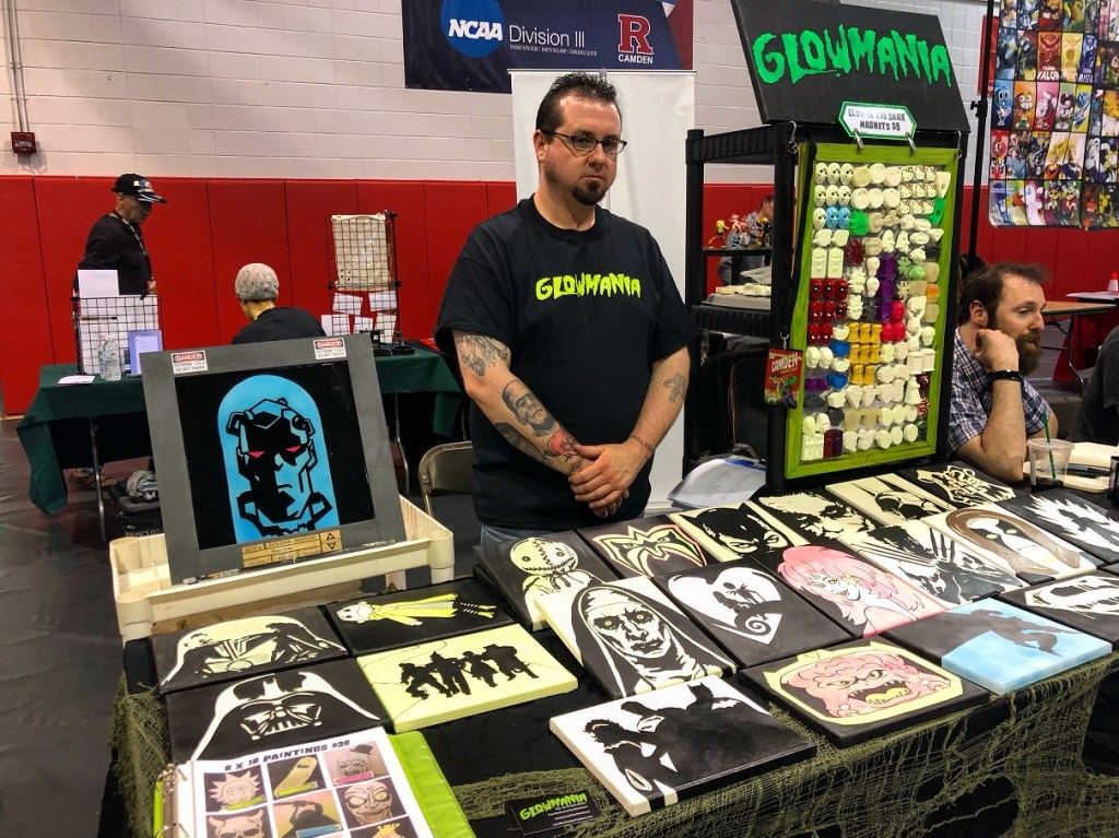 Bob Burke & his art of Glowmania had a very special booth showcasing his many hand-painted glow-in-the-dark pop culture canvases. He also had glow-in-the-dark magnets available as well: