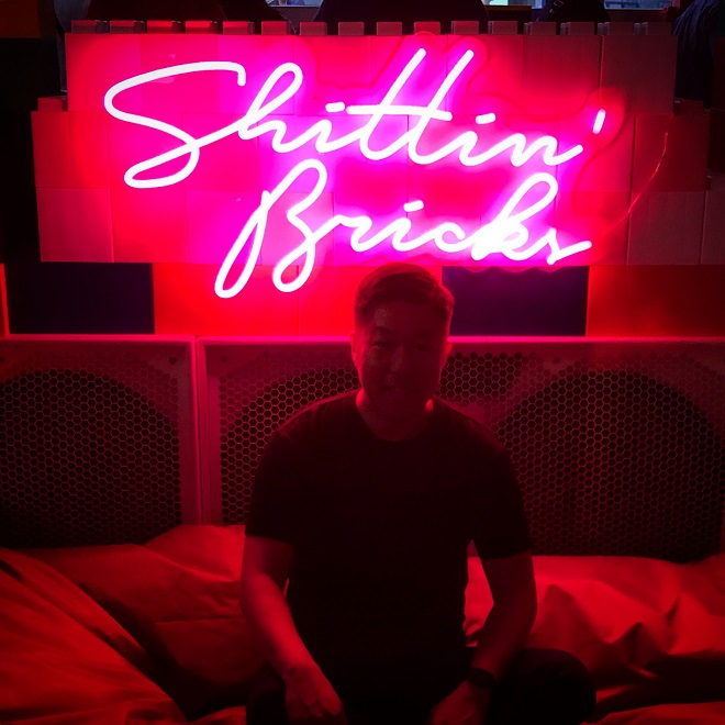 And if you’re really feeling it, grab one of the Lego character costumes around Brick Bar for the truest experience! Or just pose with a Lego head… That works too: