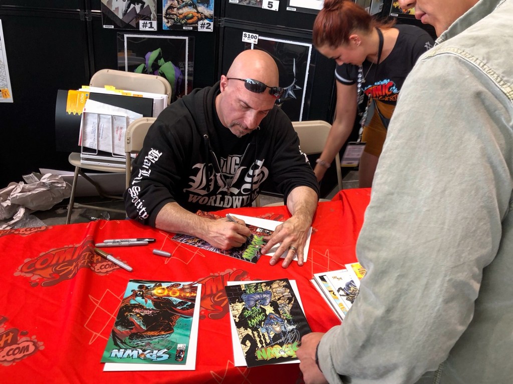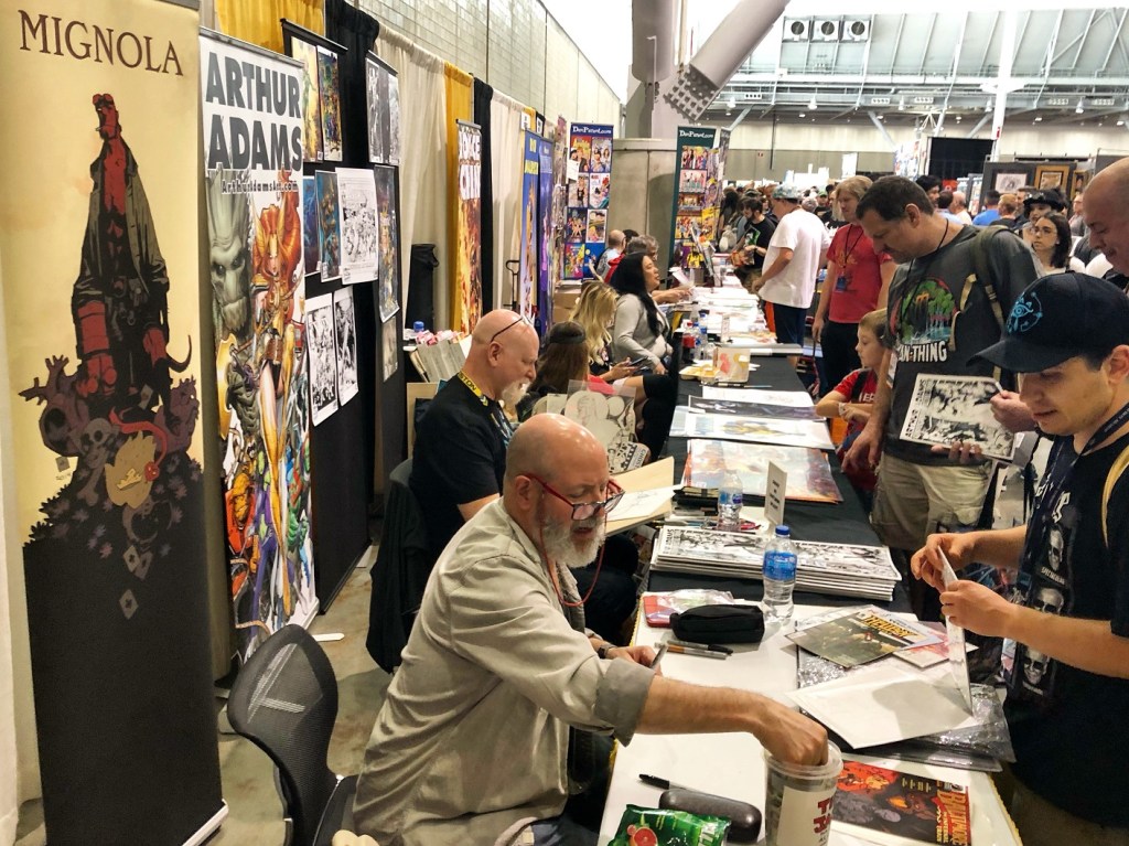 Here, fans lined up early to meet legendary artist Greg Capullo for a signing at his Comic Sketch Art booth: