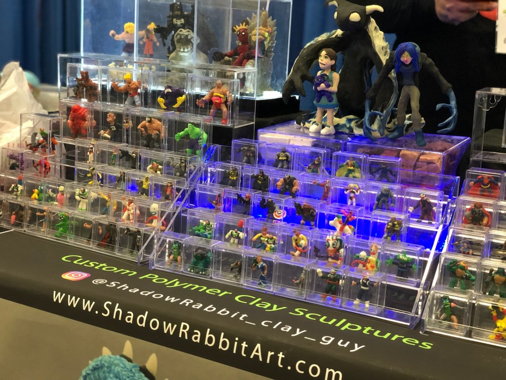It was also great to see a lot of familiar vendors selling go-to merchandise like action figures, Funko POPs, and movies. But a couple of standout vendors at the show included Shadow Rabbit Art with their custom polymer clay sculptures and Spook Bunny‘s paper crafts & illustrations: