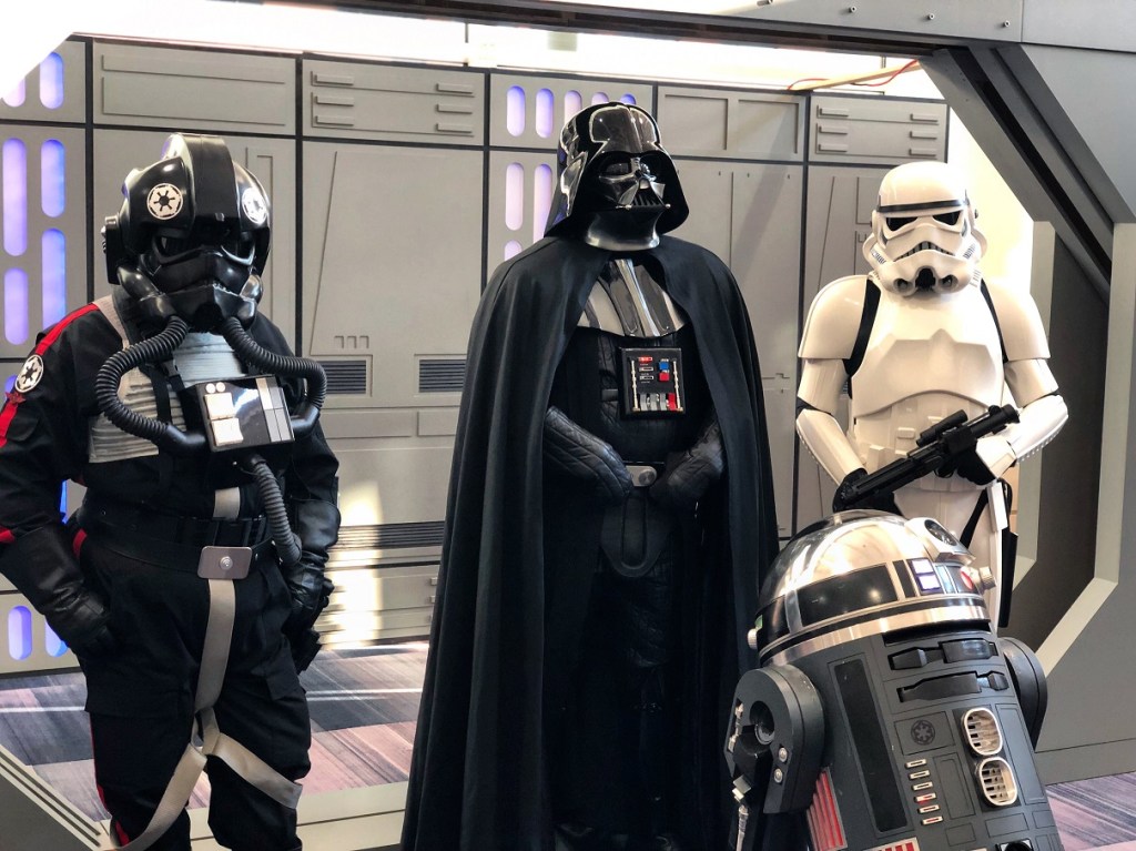 And as per usual, there were themed areas throughout the convention like an anime hall with voice actors from Dragon Ball and My Hero Academia, a wrestling section on the main floor, and even a Star Wars wing featuring the actors who portrayed the Bounty Hunters in Episode V: The Empire Strikes Back – Bill Hargreaves (IG-88), John Morton (Boba Fett), Chris Parsons (4-LOM), and Catherine Munroe (Zuckuss):