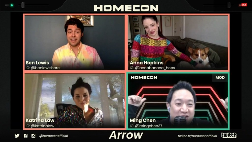 Hosts Rachel Skarsten & Paul Amos were never too far away during the panels and would occasionally pop in to say hi (and did anyone catch Rachel’s amazing panel-crashing during Inbar Lavi’s Lucifer panel to talk about their work on Imposters?). Paul shared that even if it’s just a “virtual” con for 2 days, it’s worth it in order to raise some money, bring everyone together, and ultimately have some fun! And though there were brief discussions on how guests have been spending their quarantine time, most of HomeCon was filled with laughs and encouraging words during these times… The Assassin’s Creed panel even joked that moderator Ming Chen was streaming from the bathroom!