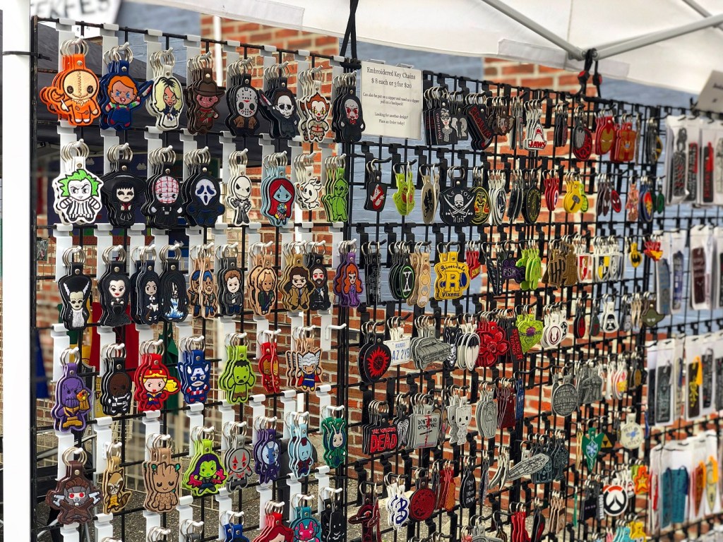 Cheryl’s Quilts & Crafts was another popular booth filled with an incredible display of stitched art, blankets, masks, dice trays, and pop culture embroidered key chains: