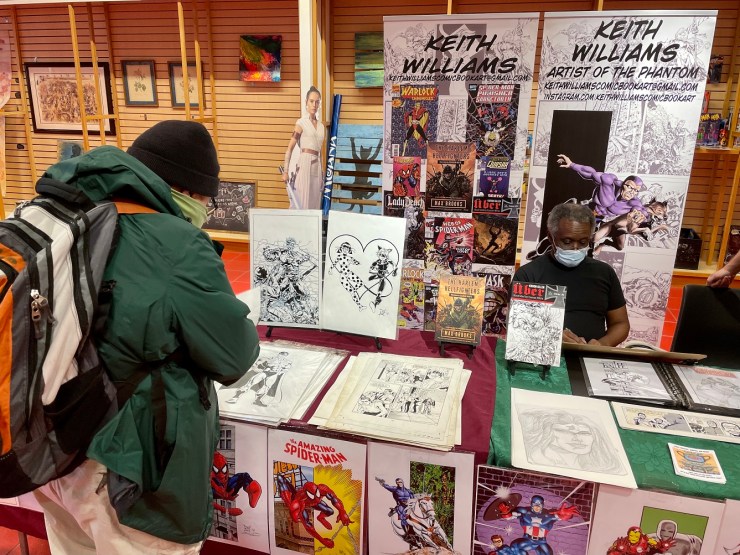 The Devoshion store in Commack, NY hosted a one-day comic art event featuring Larry Stroman, Keith Williams, and nearly a dozen local artists. As one of the last in-person events of the year, fans & collectors were able to come in with their masks into the safe & small event from 11am-4pm on December 12 and purchase art in time for the holidays!