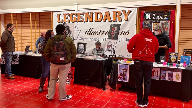 Tables were nicely spaced out along the perimeter of the area, allowing people to roam freely without crowds. All the while, you could find an amazing array of original art, prints, stickers, trading cards, and other mediums.