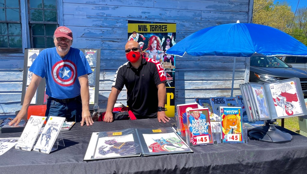 Creators William Olmo & Will Torres were also offering original sketch covers that they’ve drawn for fans. Torres still had super limited quantities of his “The Tweeting Trump” books, among other published works of his: