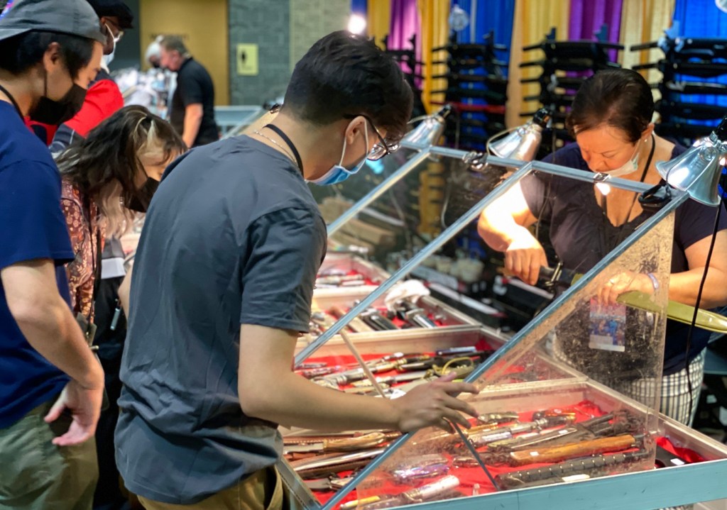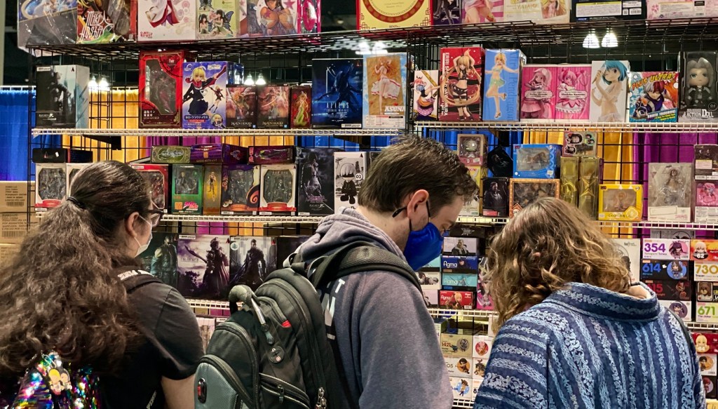 The range of products at ConnectiCon is incredible. We’re talking about Japanese manga, anime Blu-ray/DVDs, plushes, enamel pins, posters, resin dragons, dice, Gundam & other model kits, TCG cards, and unique products you may not have ever seen before! Vendors “Bowen Dragon” and “J&J Enterprises” both specialize in metal replica weapons, which are very popular with cosplayers and collectors: