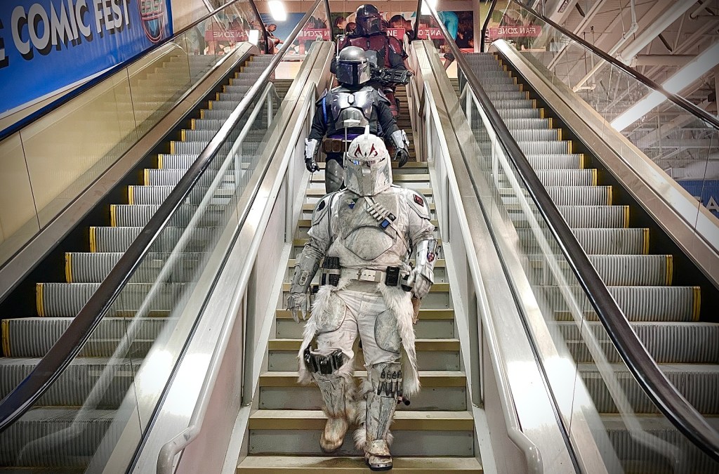 The Kubert School booth was also periodically rotating their art students so that attendees could discover the future generation of comic book artists! All the while, you can meet some fellow fans, check out a functioning R2-D2 unit by the Northeast Droidbuilders, or interact with the many cosplayers roaming the con! Not only were guest cosplayers Barbie Chula, Father Evil, and Cosplay Jesus in attendance but also professional cosplay group the Mandalorian Mercs: