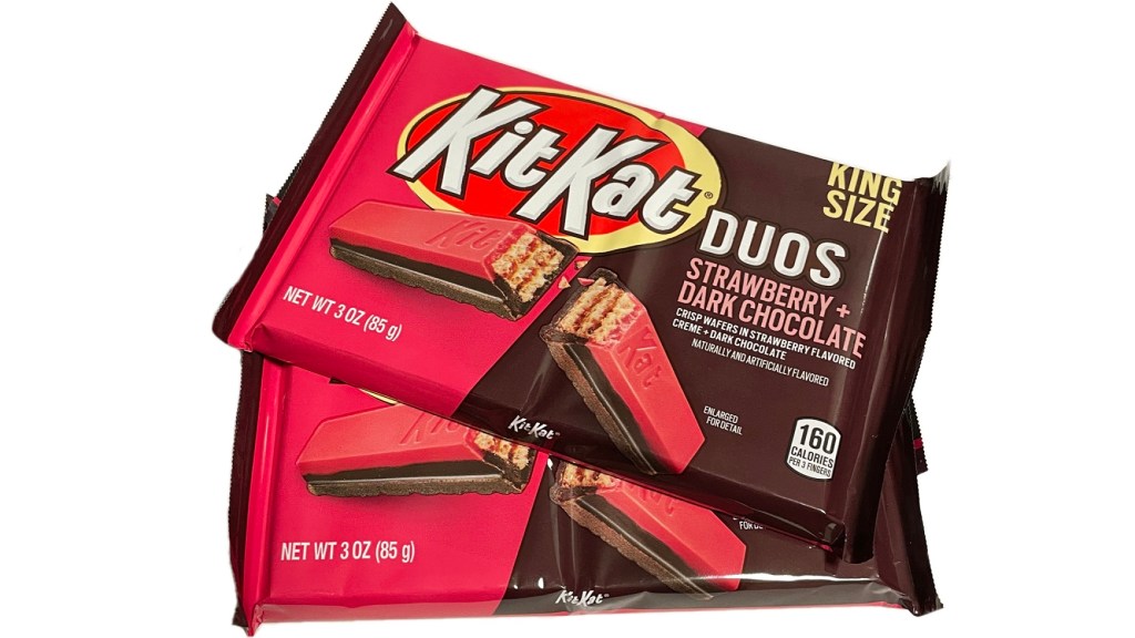 The Valentine’s Day tradition continues with even more pink Kit Kat options! Just announced by Hershey in January, the newest “Duos” flavor is the Strawberry + Dark Chocolate combination. Perfect for all you duos out there, or just to enjoy solo!
