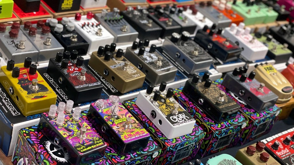 In terms of effect pedals, while you could find all your favorite pedal brands like Boss, MXR, Electro-Harmonix, and the like, custom & boutique pedals were also at the show. Footloose Effects brought along their hand-painted effects, ranging from overdrives to modulation pedals: