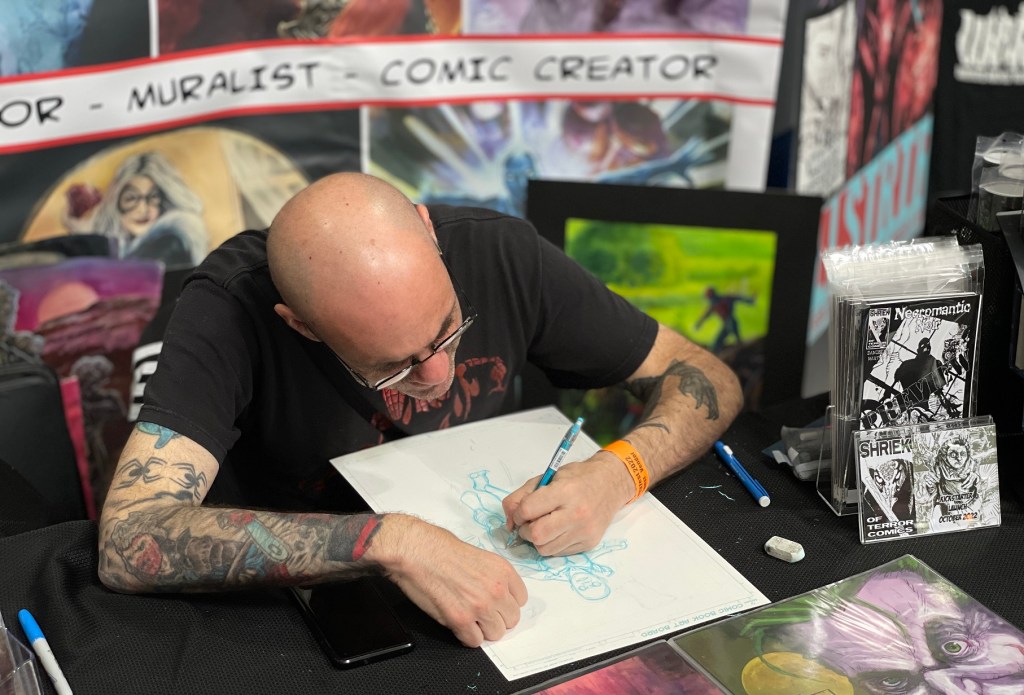 Damion of dblakemakes (above) caught the eyes of a lot of collectors with his hand-painted custom nameplates, perfect for displaying alongside your action figures, statues, and other collectibles! Some fan favorite SJ Geek Fest vendors returned as well, like: 8-Bit Fusion, Geek Boy Press, and Ingenious Edge. Plus a dozen comic book creators, artists, and writers like Christian Espiritusanto, Al Simpson, Brandon Colyer, Matthew Kund, Phil Falco, Kat Calamia, and Jude Martys who was busy working on sketch commissions: