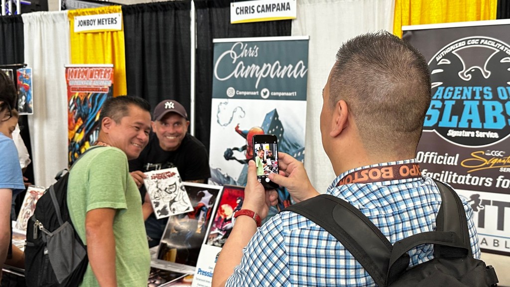 Yes, that’s a real kangaroo! Not to mention, all of the things you already love about comic cons: meet & greets with your favorite special guests, all kinds of merchandise & memorabilia for sale on the Show Floor, and a top notch Artist Alley where you can get one-on-one facetime with creators, have your books signed, or even pick up one-of-a-kind pieces of art! Ranging from custom trading cards to even full pages, fans were commissioning artists like Chris Campana (below) for original works like a Spider-Man sketch cover: