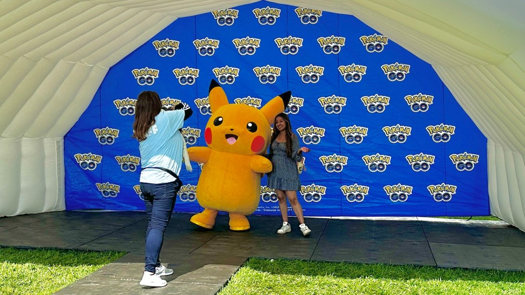 And we can’t forget about the exciting in-person happenings taking place all weekend long! We’re talking about Pikachu & Eevee photo ops (above), meet & greets with notable trainers like ZoëTwoDots, over a dozen food trucks, Team Lounges to meet fellow teammates for trades, trivia, and giveaways… and even an official merchandise store that boasted an incredible selection of plush dolls, enamel pins, apparel, and more!