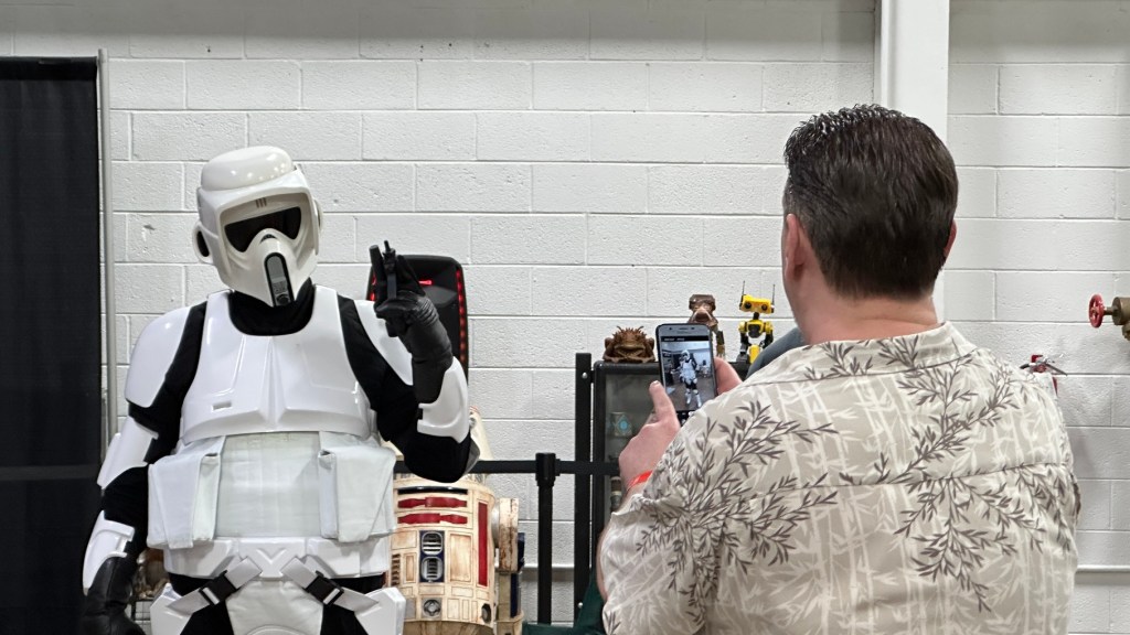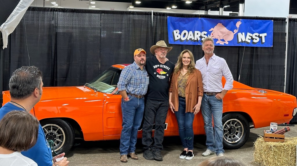 John Schneider, Catherine Bach, and Tom Wopat were even taking photos in front of the show’s 1969 Dodge Charger, “General Lee” (above)! And with other iconic cars also on display, like the A-Team Van, Jurassic Park Jeep, and DeLorean, it was the perfect backdrop for photo ops with friends, family, and the occasional cosplayers.