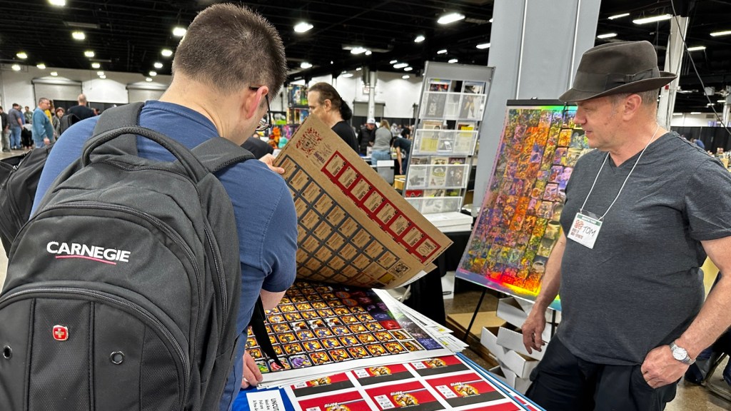If you’re a fan of collecting non-sports trading cards, love meeting your favorite trading card artists (Joe Simko, above), or simply enjoy being immersed in the trading card community, you’re not going to want to miss out on the next Philly Non-Sports Card Show (October 26-27)! Be sure to stay up to date with announcements on their official site and, in the meantime, check out our full photo gallery and recap video below: