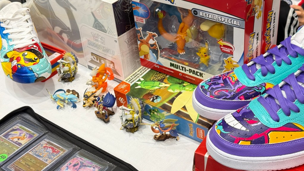 It was an action-packed day at NJ TCG Show! This time around there was a $10 raffle for a choice of any standard TCG booster case, exclusive pins for the first 100 attendees, and photo ops with Pikachu. The product variety was also wider than ever, with something for every kind of TCG collector. You just never know what you’ll find next… perhaps even custom Pokemon Nike sneakers (below)?