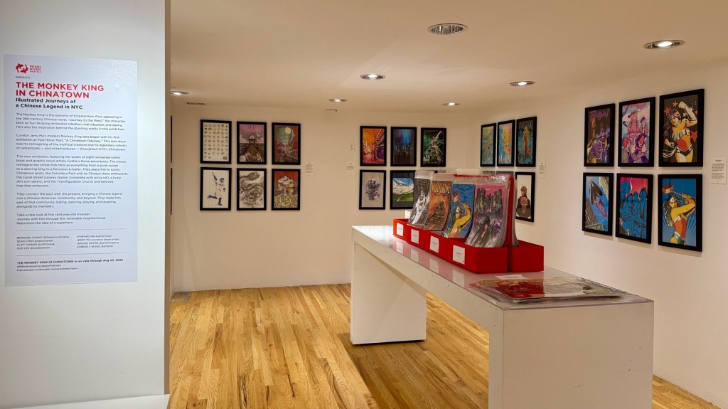 The journey continues for the Monkey King! In case you missed the limited-time art exhibition at Chelsea Market in May for AAPI Heritage Month, you can still experience artist Jerry Ma’s gallery featuring Sun Wukong, the Monkey King, at Pearl River Mart in NYC’s Chinatown through August 24, 2025. Alongside curator Jerry Ma are 7 other comic book & graphic novel artists: Bernard Chang, Sean Chen, Cliff Chiang, Soo Lee, Howard Ma, Jerome Opeña, and Kimberly Wang, who each contributed one Monkey King piece that was also on view in Chelsea, as well as six additional illustrations found only at Pearl River Mart.