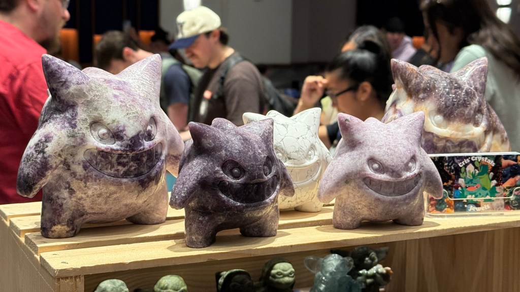 But beyond TCG, the Expo also featured Funko Pops, comic books & magazines, plushies, Shikishi boards & other rare artist sketches, limited edition prints & cels, PiggyBanx, and sports cards for sale. Not to mention plenty of cool custom collectibles like crafts, lightboxes, woodwork, pixel art, 3D printed Poke Balls, and stunning character crystals by Cris’ Crystals & Jewels: