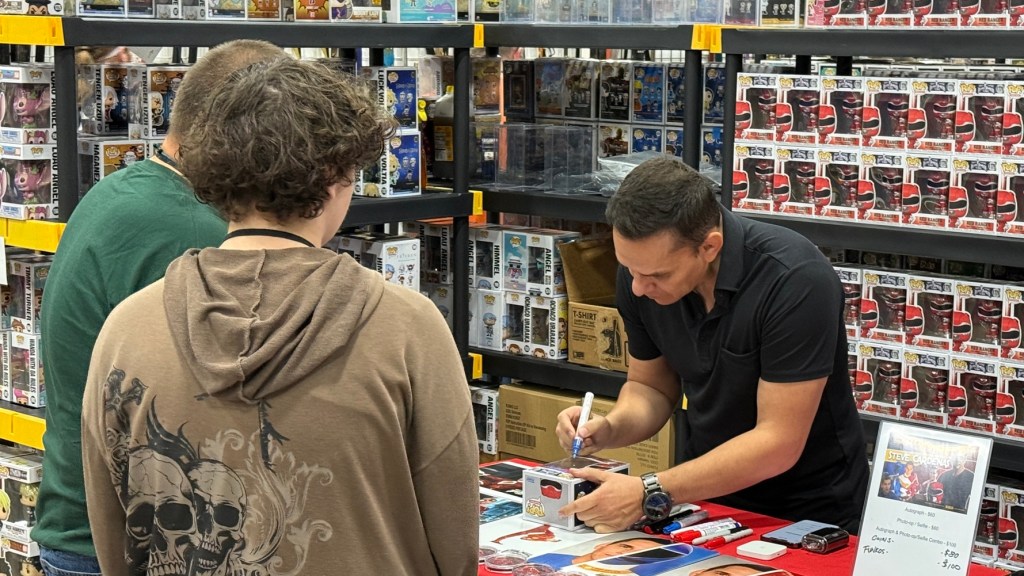 At Animate! Philadelphia, fans could meet over 60 special guests including notable voice actors such as John DiMaggio (Futurama), Tara Strong (Teen Titans), Sarah Natochenny (Pokemon), and the cast of Hazbin Hotel, as well as featured creators Cyanide & Happiness, Joe Wos, and even in-booth appearances by childhood heroes like Mighty Morphin’ Power Rangers star Steve Cardenas (below), who was autographing and taking selfies: