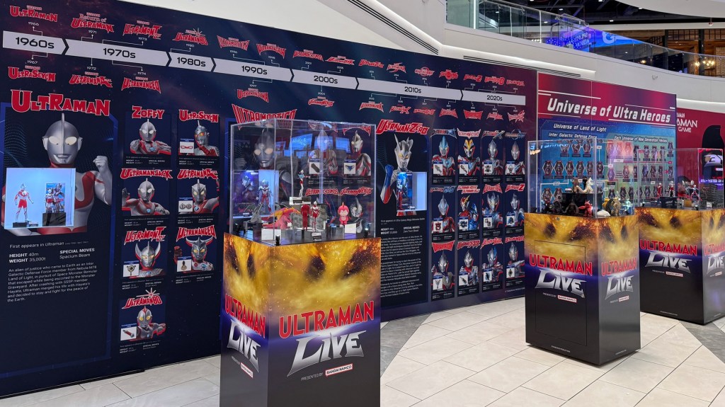 Shop for figures & kits, see the evolution of Ultraman through the decades (above), collect mask & headband giveaways while supplies last, and snap a pic with the various photo ops around the event space, including a larger-than-life oversized Ultraman.