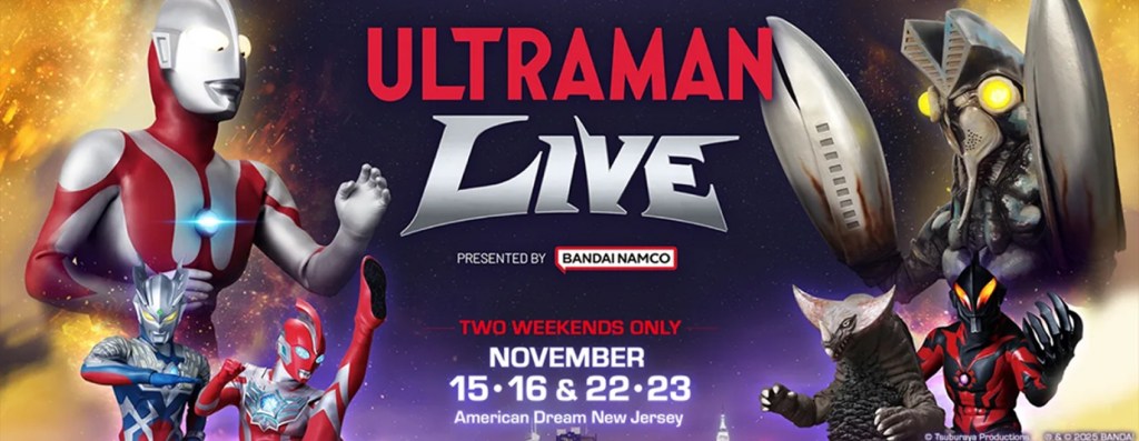 Ultraman LIVE is making its U.S. debut for two weekends only! Presented by Bandai Namco and Tsuburaya Productions, this one-of-a-kind stage performance held at American Dream Mall in New Jersey combines action-packed choreography, LED visual effects, and all of your favorite Ultra Heroes & Kaiju… Even special appearances by MCs Jacki Jing and Christopher Sean, the voice of Ken Sato / Ultraman in Netflix’s Ultraman: Rising! What a way to celebrate 60 years of Ultraman!