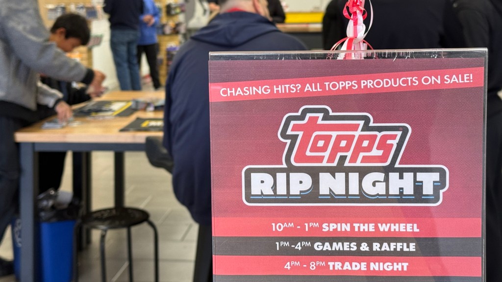February 21 marked the 5th Topps Rip Night, as trading card company Topps & parent company Fanatics took their one-day celebration of the hobby to the next level. What started as a nationwide promotion just a few years ago with 300 shops has now grown into a global sensation, with over 750 shops participating! Collectors young & old, new & veteran, joined the festivities at their participating local hobby shops for deals on Topps products, giveaways, trade nights, and even celebrity & athlete appearances at select locations.
